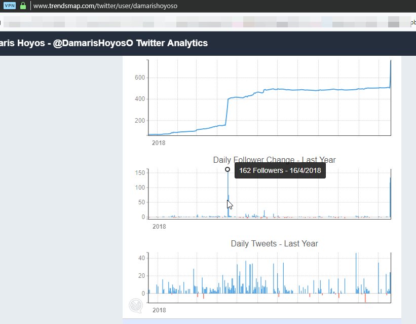 Más sobre Damaris, hasta ayer tenía en la cuenta actual 510 Followers, además del día de ayer saben que día fue el de mayor crecimiento en su cuenta? el 16 de abril de 2018 adivinan que pasó ese día? Si, #UniversitariosConAMLO
