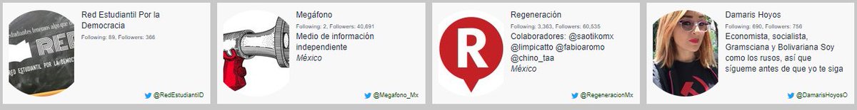 Las cuentas que más influyeron: Megafono y Regeneracion ya los conocemos muy bien por ser porristas del nuevo gobierno, las otras 2 están interesantes